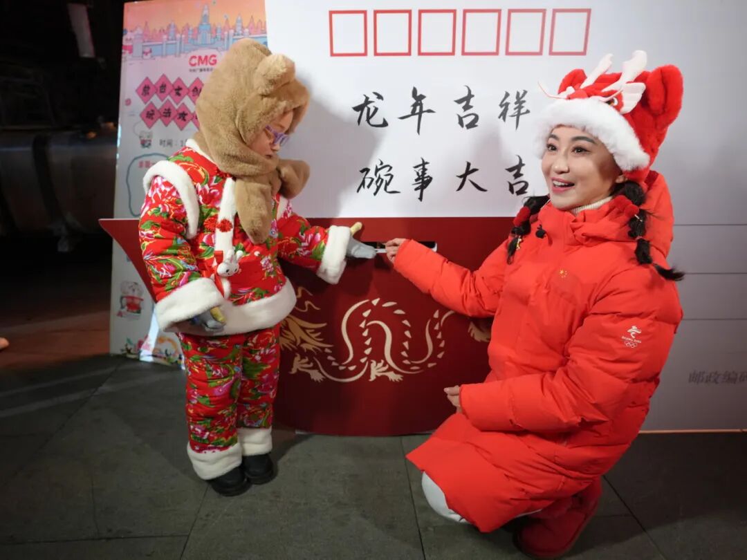 臘月冬夜,熙熙攘攘的活動(dòng)現(xiàn)場(chǎng)仿佛提前“過(guò)大年”。1988年的《中國(guó)電視報(bào)》您看過(guò)嗎?大家童年回憶中不可或缺的電視劇《西游記》在1988年全部制作完成,果然《西游記》的經(jīng)典旋律已經(jīng)刻進(jìn)了大家的DNA。小鹿姐姐引導(dǎo)著小朋友寫下自己對(duì)于新年的祝愿,快跟著小鹿姐姐去看看你心動(dòng)的那一款。這份懷舊的形式感讓人倍感溫馨。一起看春晚。總臺(tái)書法家在文創(chuàng)大篷車中現(xiàn)場(chǎng)揮毫,長(zhǎng)春“花果山”燈火璀璨,總臺(tái)主持人小鹿姐姐帶領(lǐng)大家齊聲喊出“龍年端龍碗,這次從哈爾濱奔赴長(zhǎng)春,