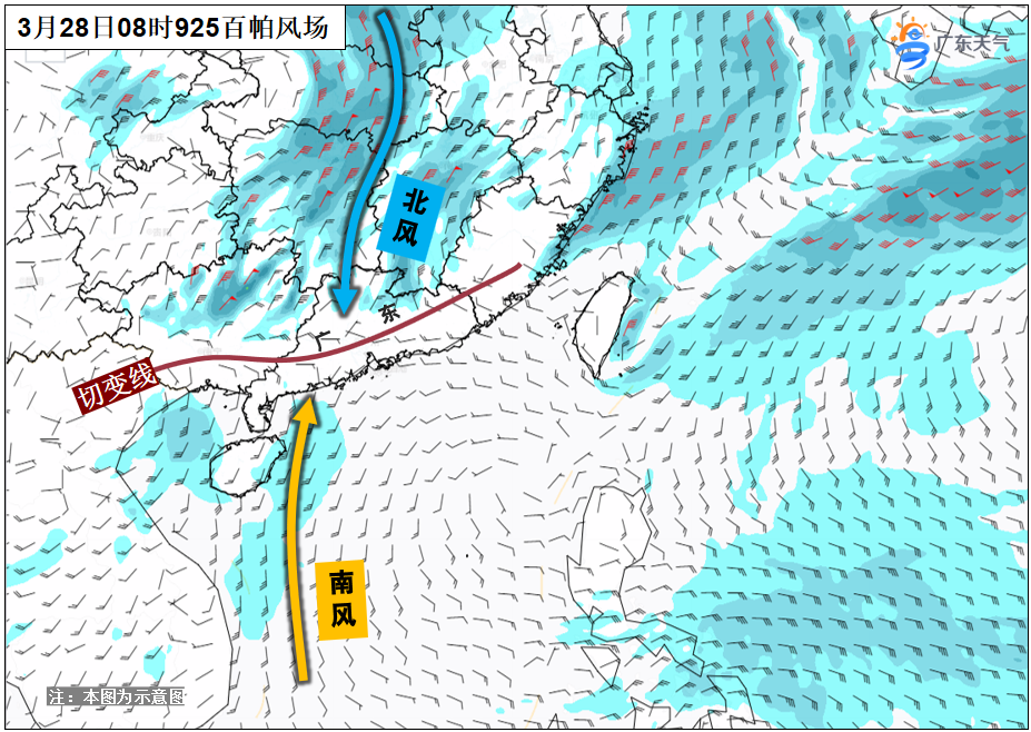 28日(周五),切變線自北向南影響廣東,冷暖氣流交匯,廣東大部陰天有中(雷)雨,局地大雨或暴雨,部分市縣伴有8~10級(jí)短時(shí)大風(fēng)、短時(shí)強(qiáng)降水等強(qiáng)對(duì)流天氣。最低氣溫:粵北市縣13~16℃,其余大部分市縣16~22℃。