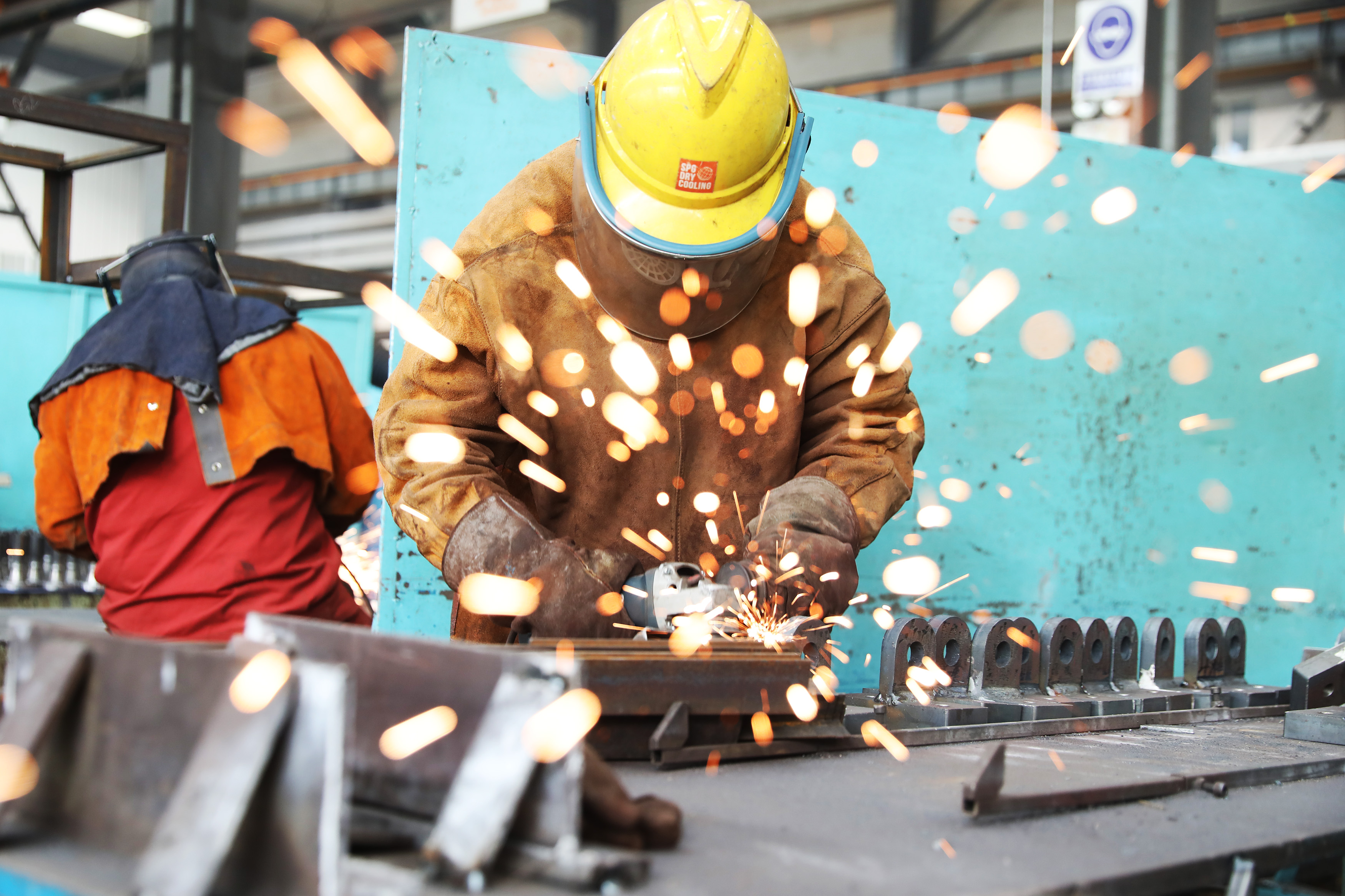 2月24日,位于橋西區(qū)新興產(chǎn)業(yè)園區(qū)的千企斯必高空氣冷卻技術(shù)(張家口)有限公司生產(chǎn)車間,設(shè)備運(yùn)轉(zhuǎn),競(jìng)向?qū)⒊龊富w濺,新而行丨線國(guó)正在為沙特阿拉伯卡西姆電站生產(chǎn)空冷項(xiàng)目產(chǎn)品。海外海帶