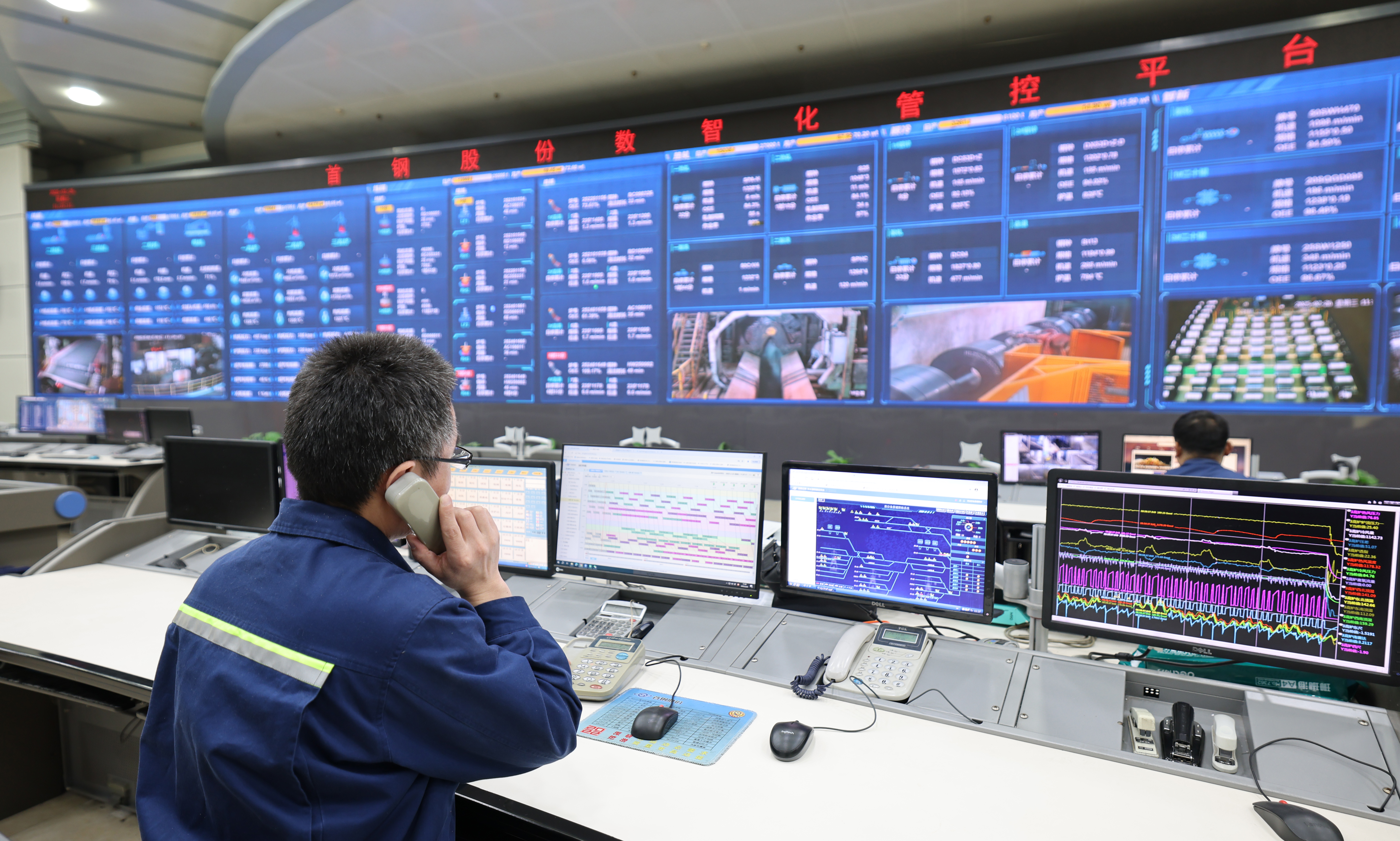 記者在位于河北省遷安市的河北首鋼遷鋼公司調(diào)度指揮中心看到,巨大的遷安企業(yè)主控屏幕上各類數(shù)據(jù)不停滾動(dòng),工作人員在各自機(jī)位上協(xié)同對(duì)廠區(qū)超過(guò)60個(gè)生產(chǎn)工序進(jìn)行數(shù)字化管控。煉