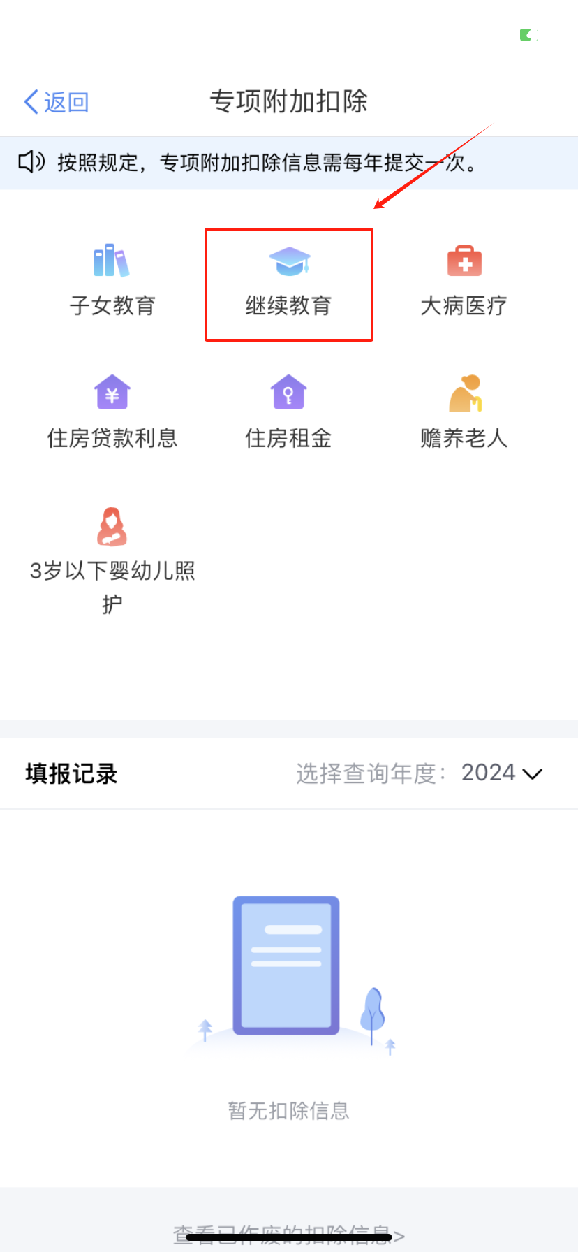 第二步,在專項(xiàng)附加扣除頁(yè)面,起退錢(qián)最點(diǎn)擊“繼續(xù)教育”。領(lǐng)元