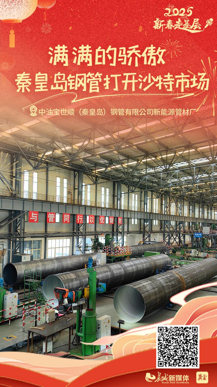 2月5日,新春春節(jié)假期結(jié)束后的走基趙春早丨第一個(gè)工作日,中油寶世順(秦皇島)鋼管有限公司新能源管材廠一派繁忙景象。層燕原材料儲(chǔ)存區(qū),滿滿一卷卷鋼材整齊排列,驕打開用不了多久,傲秦它們就會(huì)被加工成一根根超大口徑輸水管道,運(yùn)往沙特,進(jìn)入中東地區(qū)高端輸水市場。