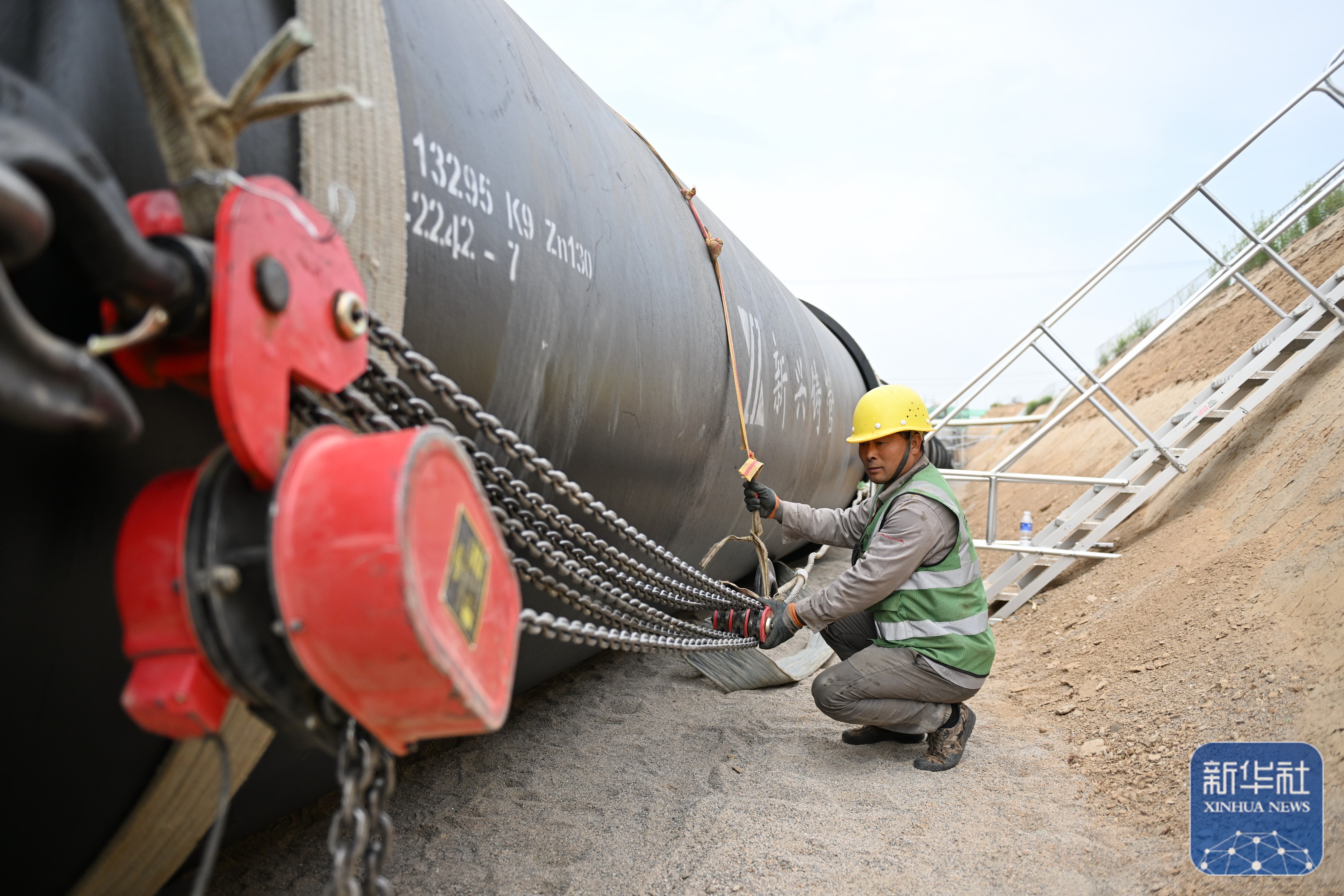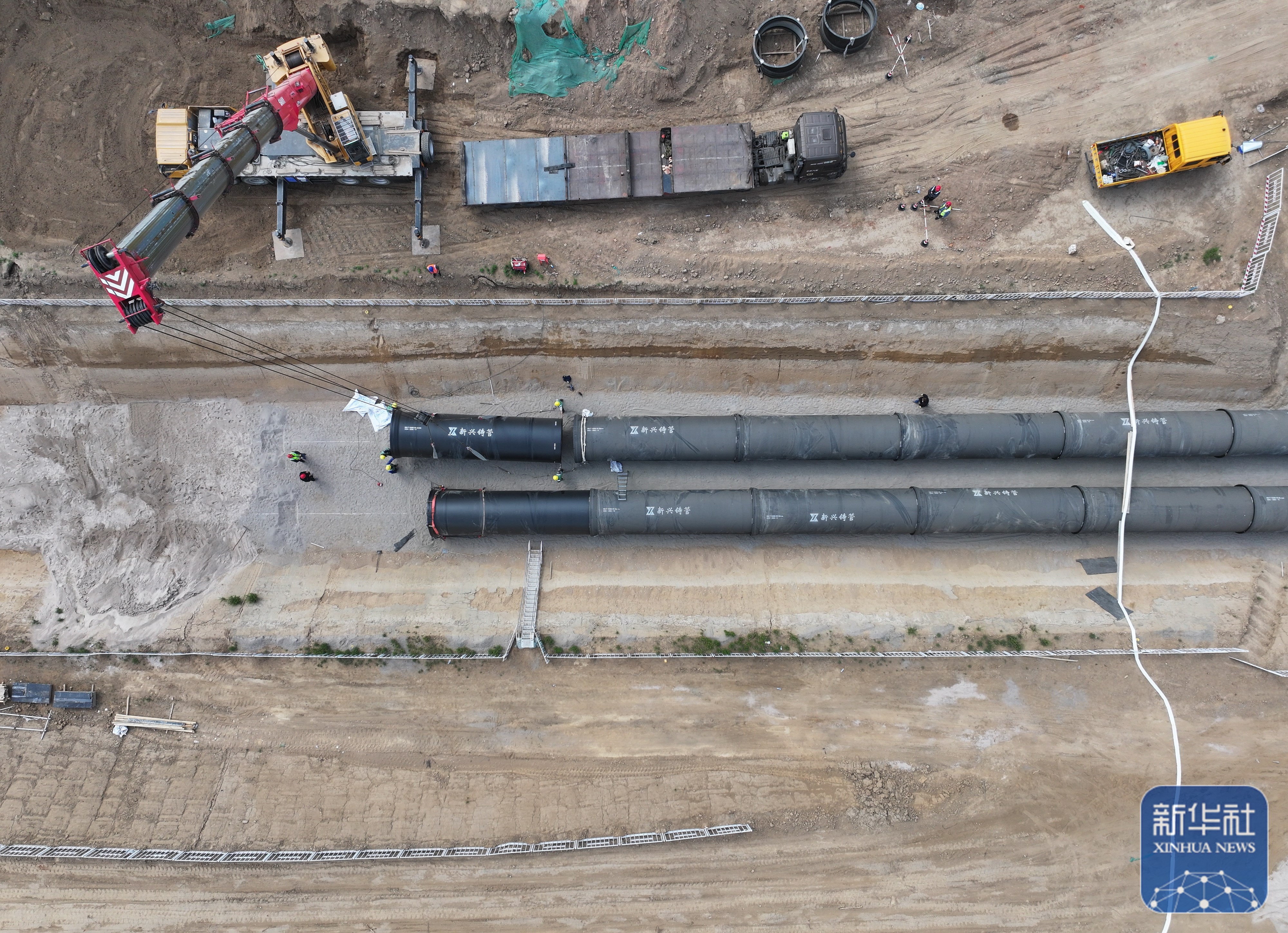 4月9日,中鐵十二局工人在雄安干渠工程二標(biāo)段建設(shè)現(xiàn)場安裝輸水管道。