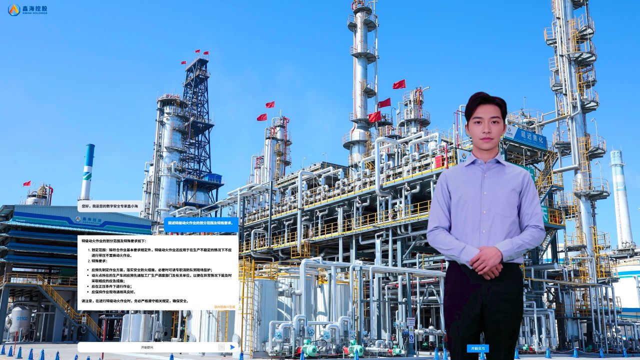 在河北鑫??毓杉瘓F(tuán)有限公司智能中心,業(yè)聚技術(shù)人員與數(shù)字人鑫小海一問(wèn)一答,鏈成文字實(shí)時(shí)跳動(dòng)在屏幕上?;盍?/p>