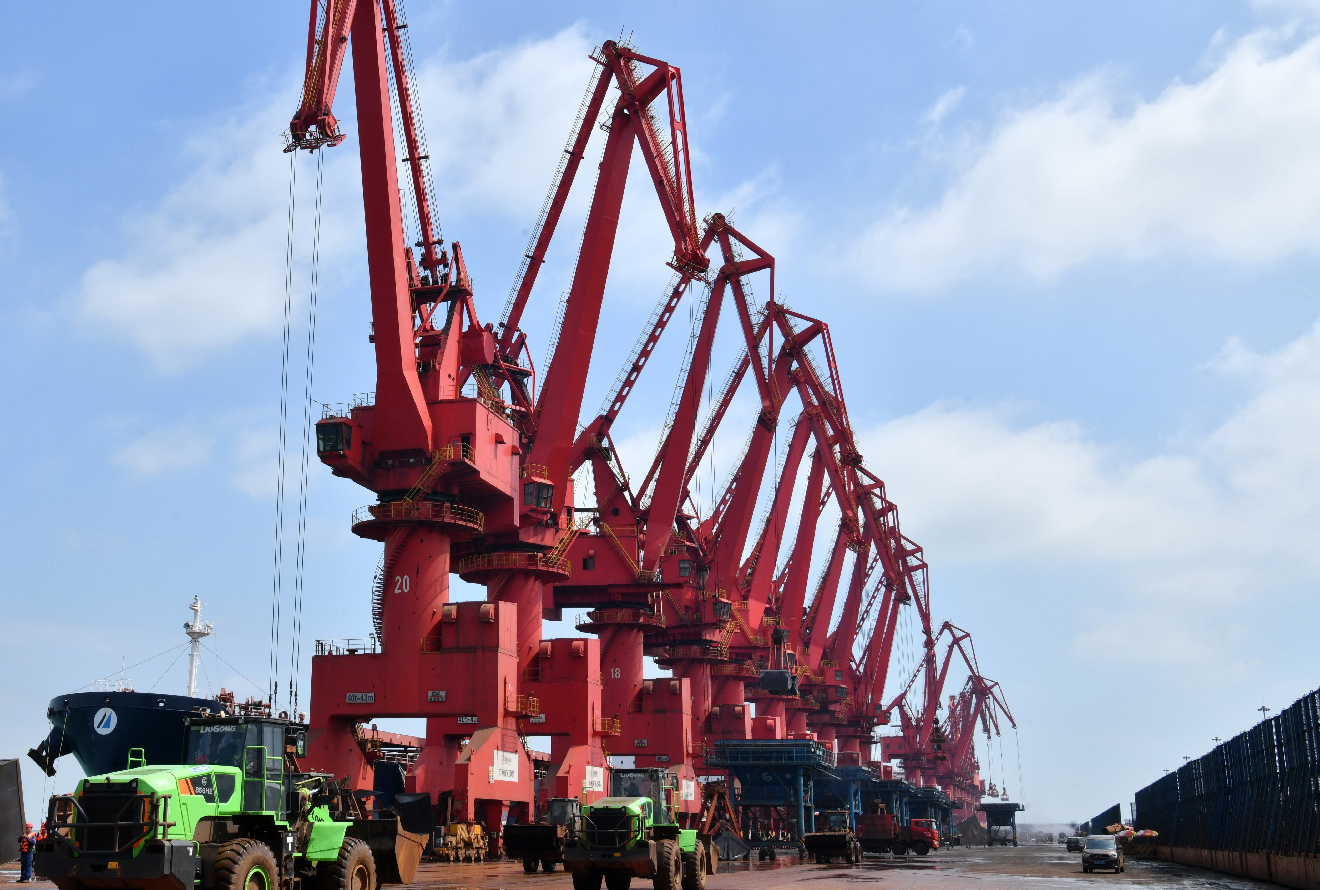 ??↑7月16日,一艘輪船靠泊在黃驊港綜合港區(qū)散貨碼頭卸載。量穩(wěn)