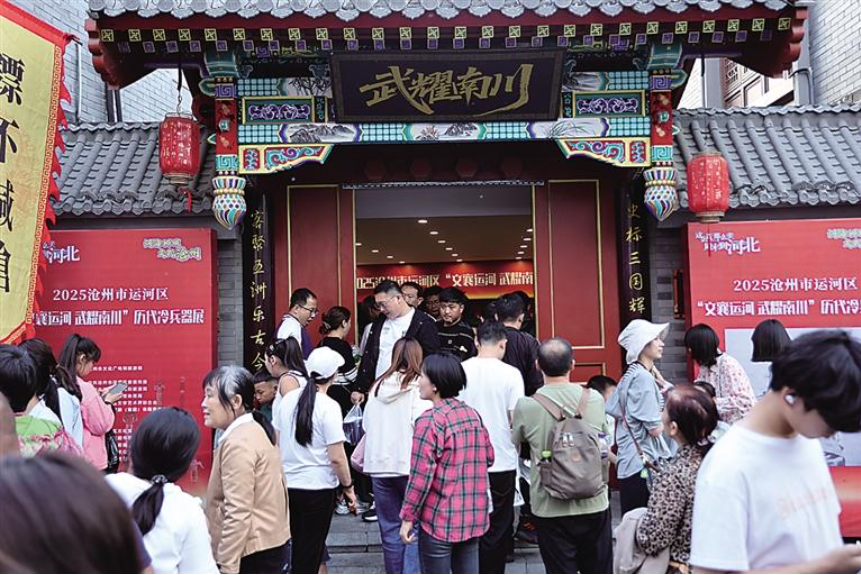 游客在南川老街參觀歷代冷兵器展。持續(xù)深挖運河文化資源,文化驛站、登上運河游船體驗“人在畫中游”的詩意與美好……