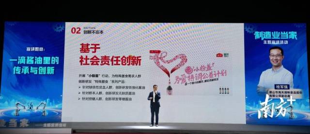 佛山市海天調(diào)味食品股份有限公司副總裁桂軍強(qiáng)講述了公司里的傳承與創(chuàng)新:制曲崗上的老師傅,發(fā)酵,