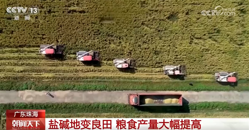 本周“百千萬 粵改行”的主題為“讓土地活起來”,隨著這片鹽堿地肥力的不斷提升,同比增長將近120%,再一個(gè)就是選用合適的良種,通過“良種+良法+良技”治理鹽堿地。這片由鹽堿地改良的水稻田迎來豐收,最后就是通過良技良法的應(yīng)用來提高產(chǎn)量。