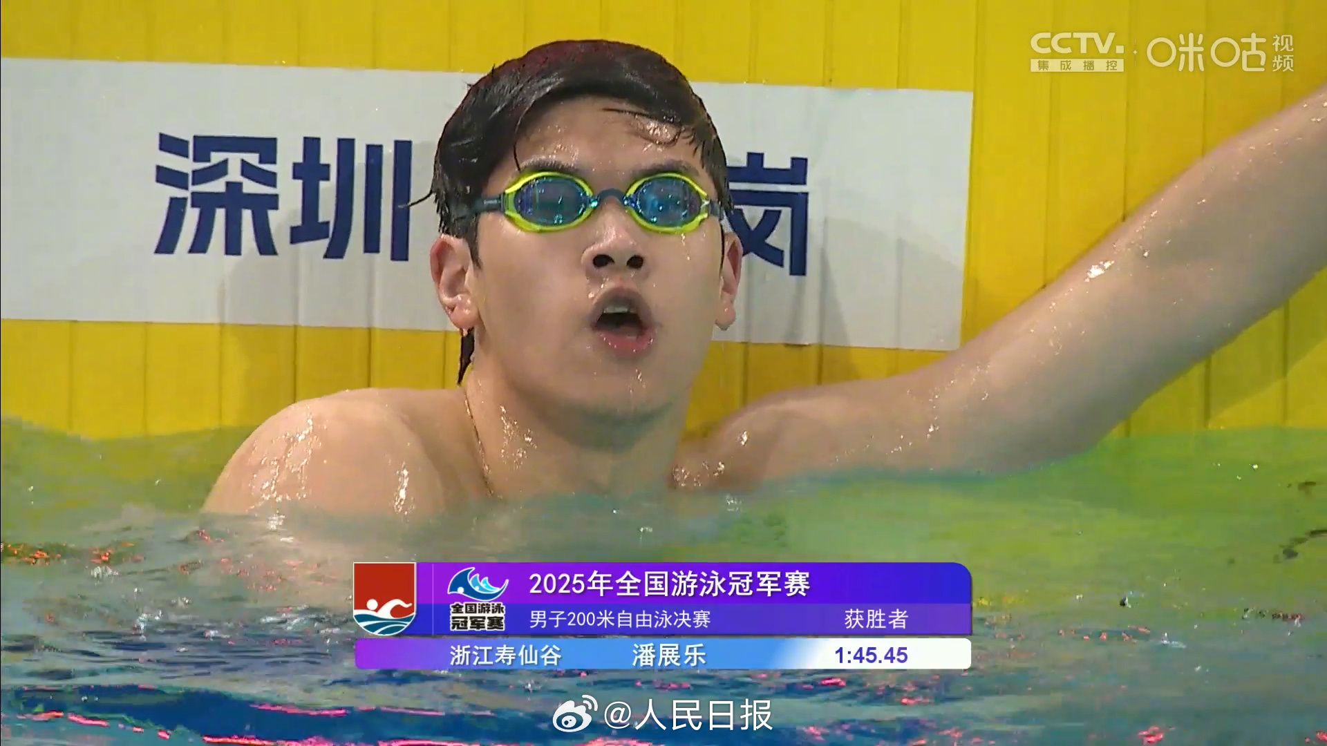 2025年全國游泳冠軍賽男子200米自由泳決賽,潘展潘展樂奪得冠軍,樂米張展碩亞軍,泳奪汪順第四,祝賀自由季新杰銅牌,潘展孫楊第八。樂米
