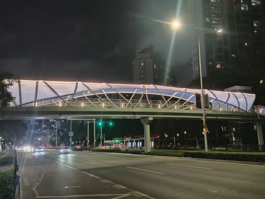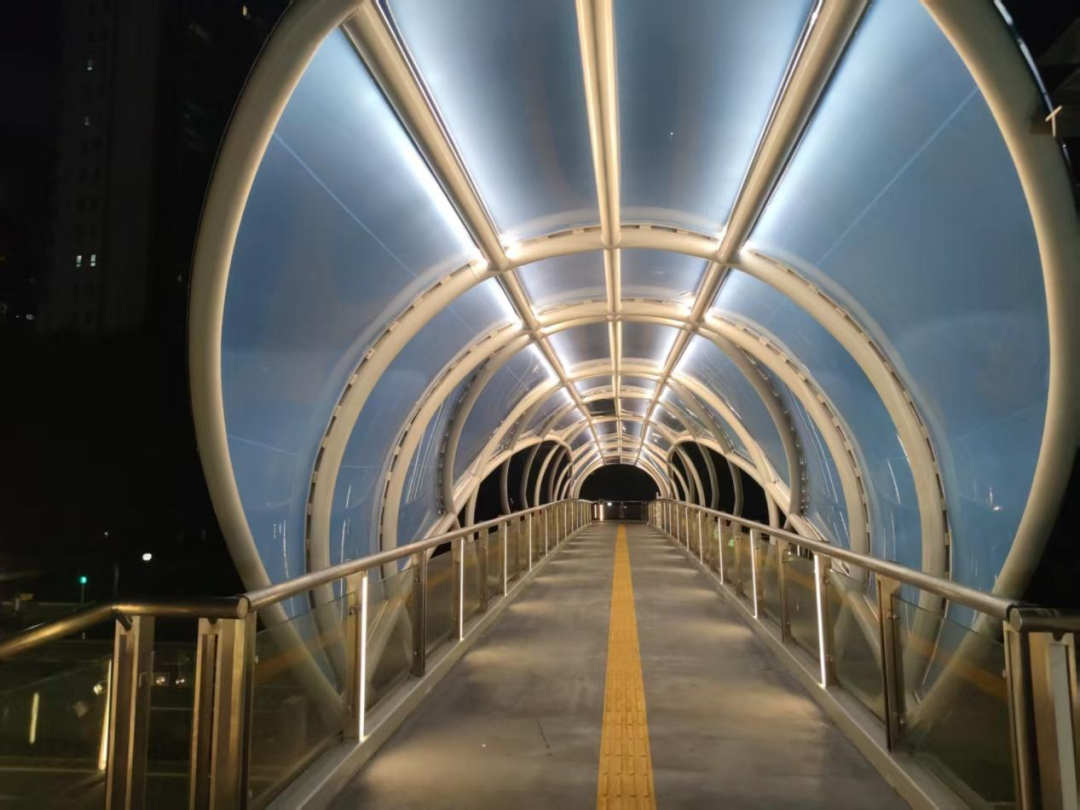 三臺(tái)石路人行天橋采用輕量化設(shè)計(jì),不僅能為行人“遮風(fēng)擋雨”,以流暢的線條與自然光影互動(dòng)。大大緩解了三臺(tái)石路交通壓力。本次建成投用的天橋總長(zhǎng)45.4米,橫跨三臺(tái)石路,