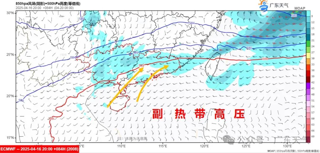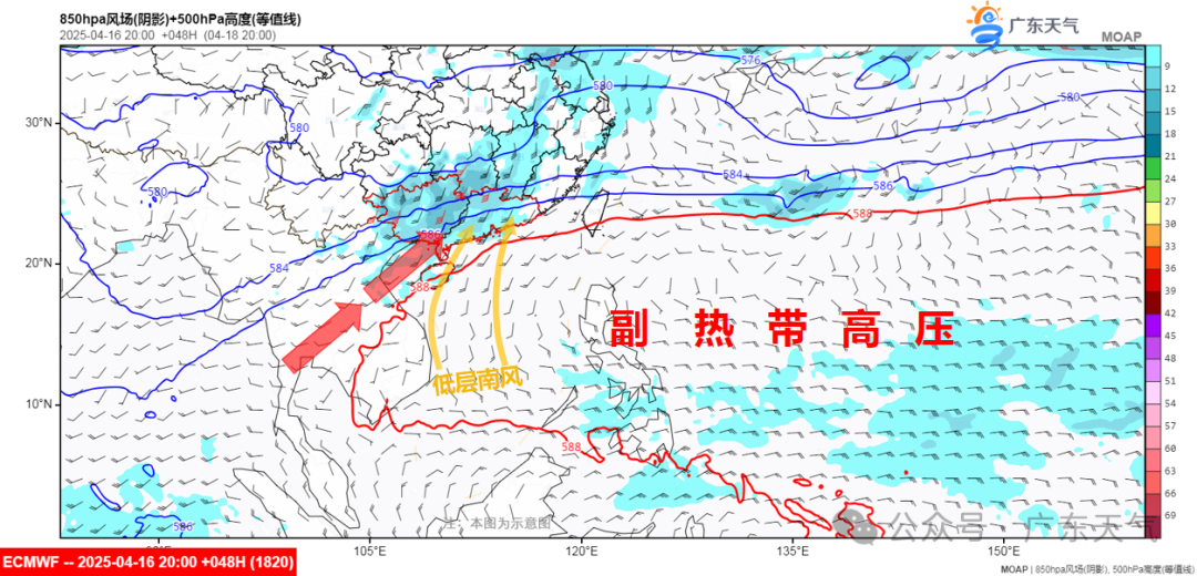 19日,天氣變得復雜起來。韶關、中層盛行偏西南氣流,
